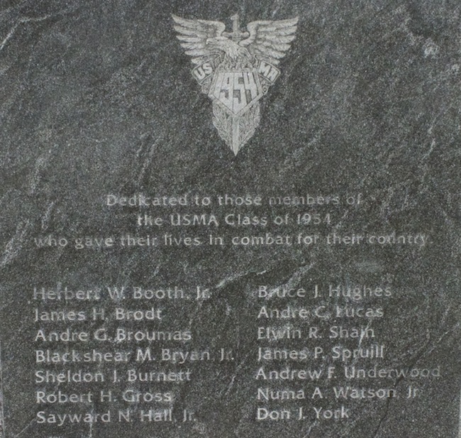 Then there is the entrance to the Lucas Military Heritage Center, which is next to the West Point Museum. The center is named after another of my father’s classmates, Andre Cavaro Lucas, a Medal of Honor recipient who was killed during the Vietnam War. Near the entrance sat another stone engraved with the names of members of the Class of 1954 who were killed in combat. My father pointed to one of the names and said that the deceased classmate had been with him in Vietnam and had asked my father to fly on a mission in a helicopter with him. My father didn’t make it that day, and my father’s classmate’s helicopter was shot down, and my father’s classmate was killed.