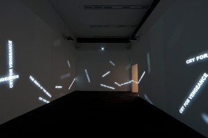 “OMG,” Brian Kane, 2011, Red vinyl, metal, electronics, is on exhibit at the Albany Airport Gallery’s “LOL” show, from Oct. 1, 2011, to March 25, 2012. (Photo Courtesy Albany Airport Gallery)