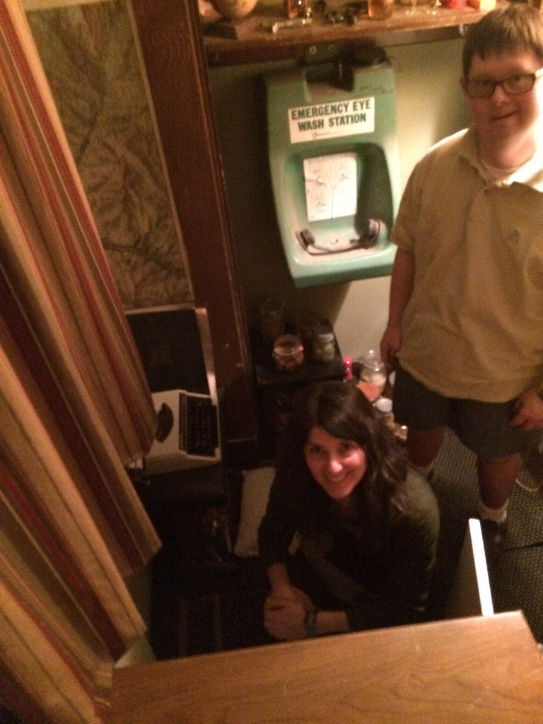 One of the few spaces on the second floor where you can stand, after crawling around, with my spouse and brother.