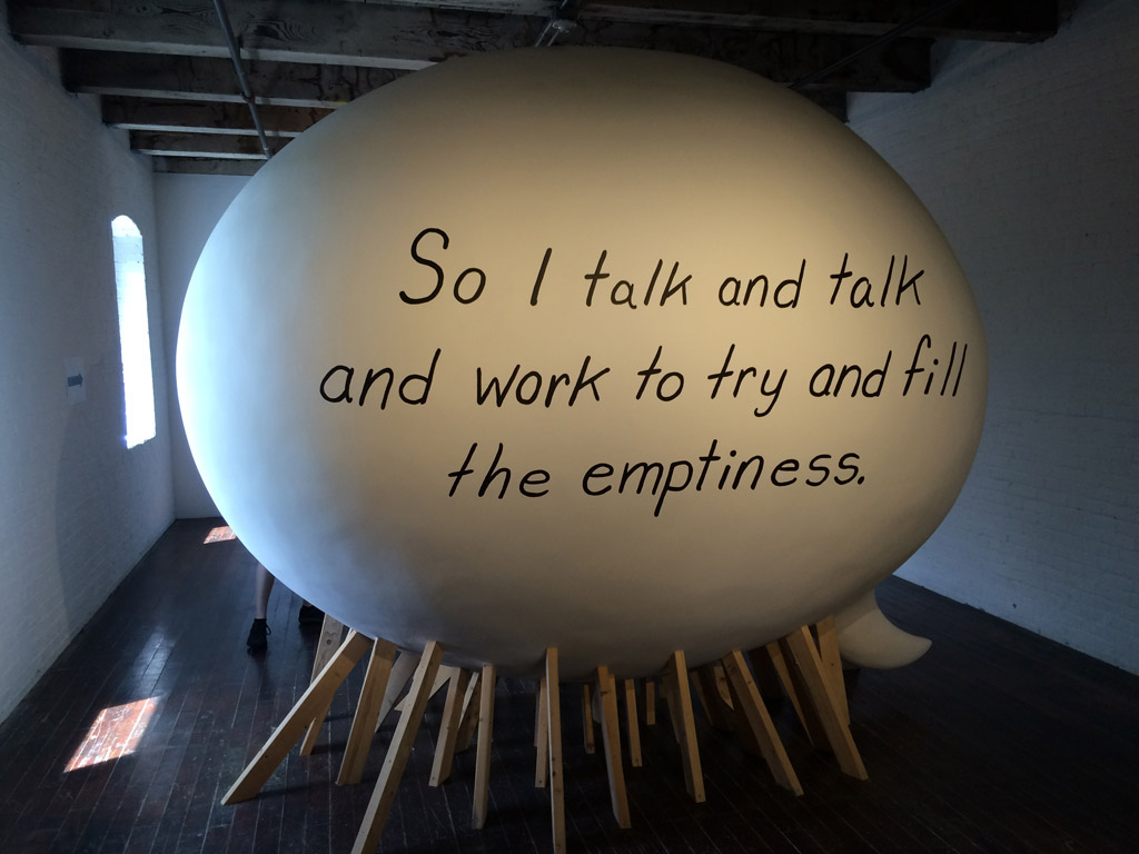 My brother standing before Matt Bollinger’s The Lot, 2013, at the exhibition Marx@200 at SPACE Gallery, Pittsburgh, May 5, 2018.Â